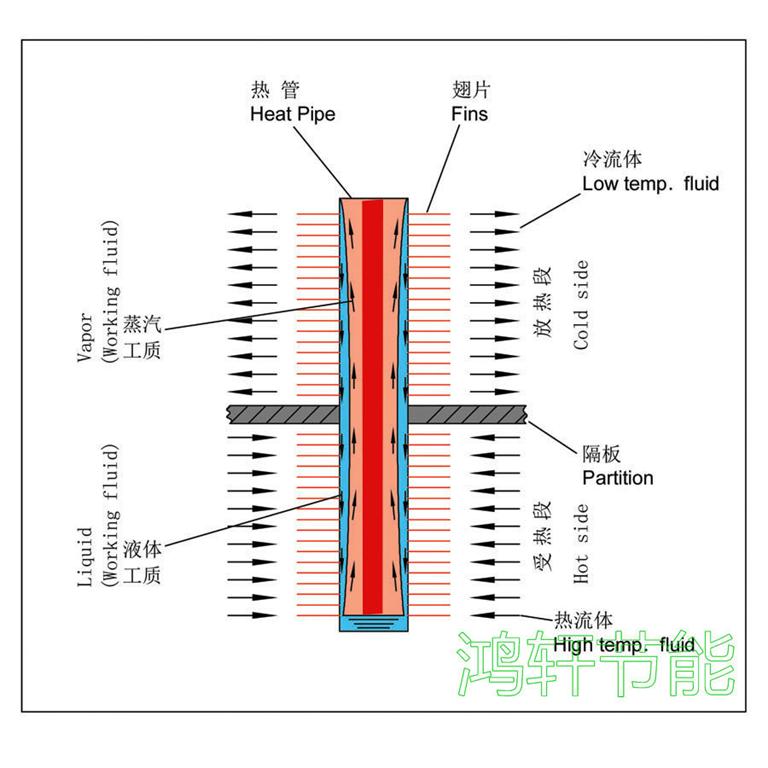 常規水管鍋爐水的汽化在水管內進行,水管內水沸騰容易產生傳熱不穩定現象,熱管余熱鍋爐水的汽化是在管外汽包內沸騰。常規鍋爐只能*水管內表面 對水傳熱,而熱管可加肋片或翅片,傳熱面積則遠大于水管,熱管余熱鍋爐的換熱元件為單個的獨立熱管,其整體結構簡單,有個別熱管發生損壞,不影響整個鍋爐 的運行,維修方便。